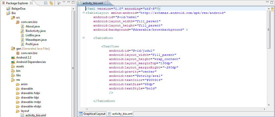 digunakan untuk membuat aplikasi pengenalan diri ini adalah Eclipse sebagai
